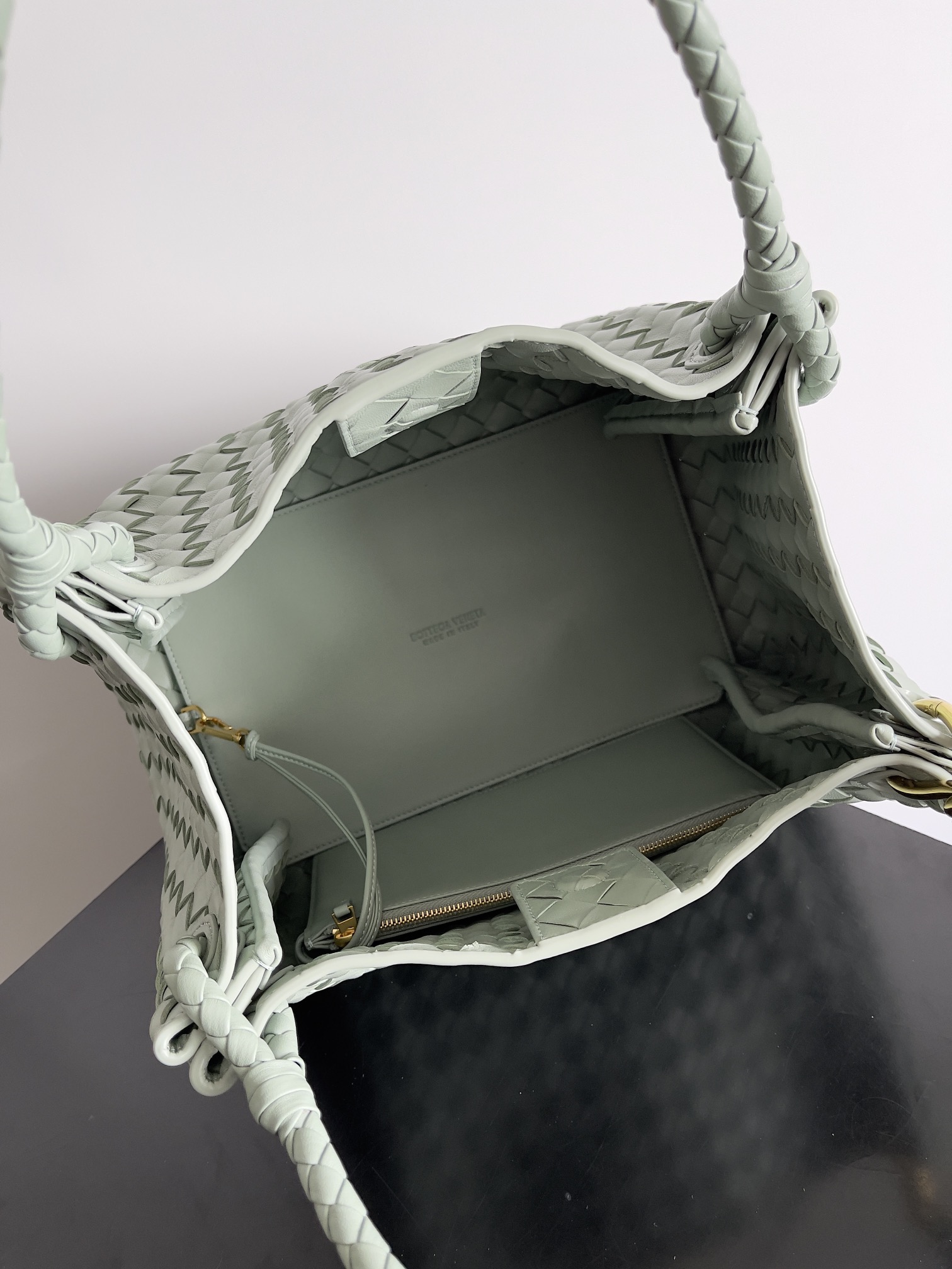 • Lining: Lambskin bonded Intrecciato