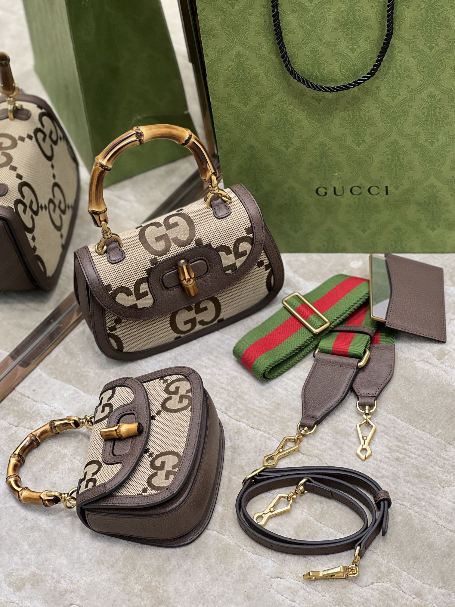 Gucci Top Handle Bag With Bamboo-17*12*7.5&21*15*7CM - Image 1