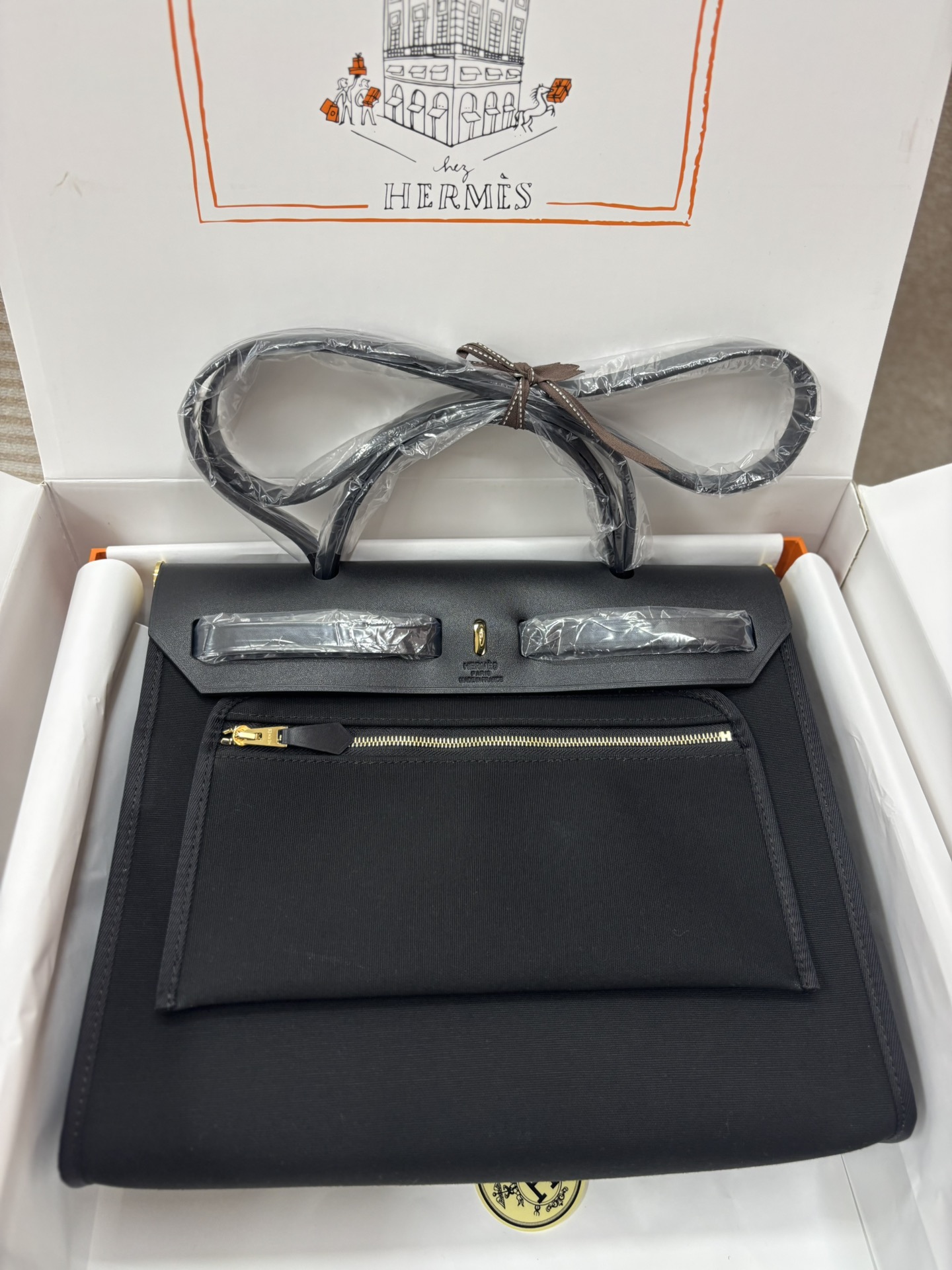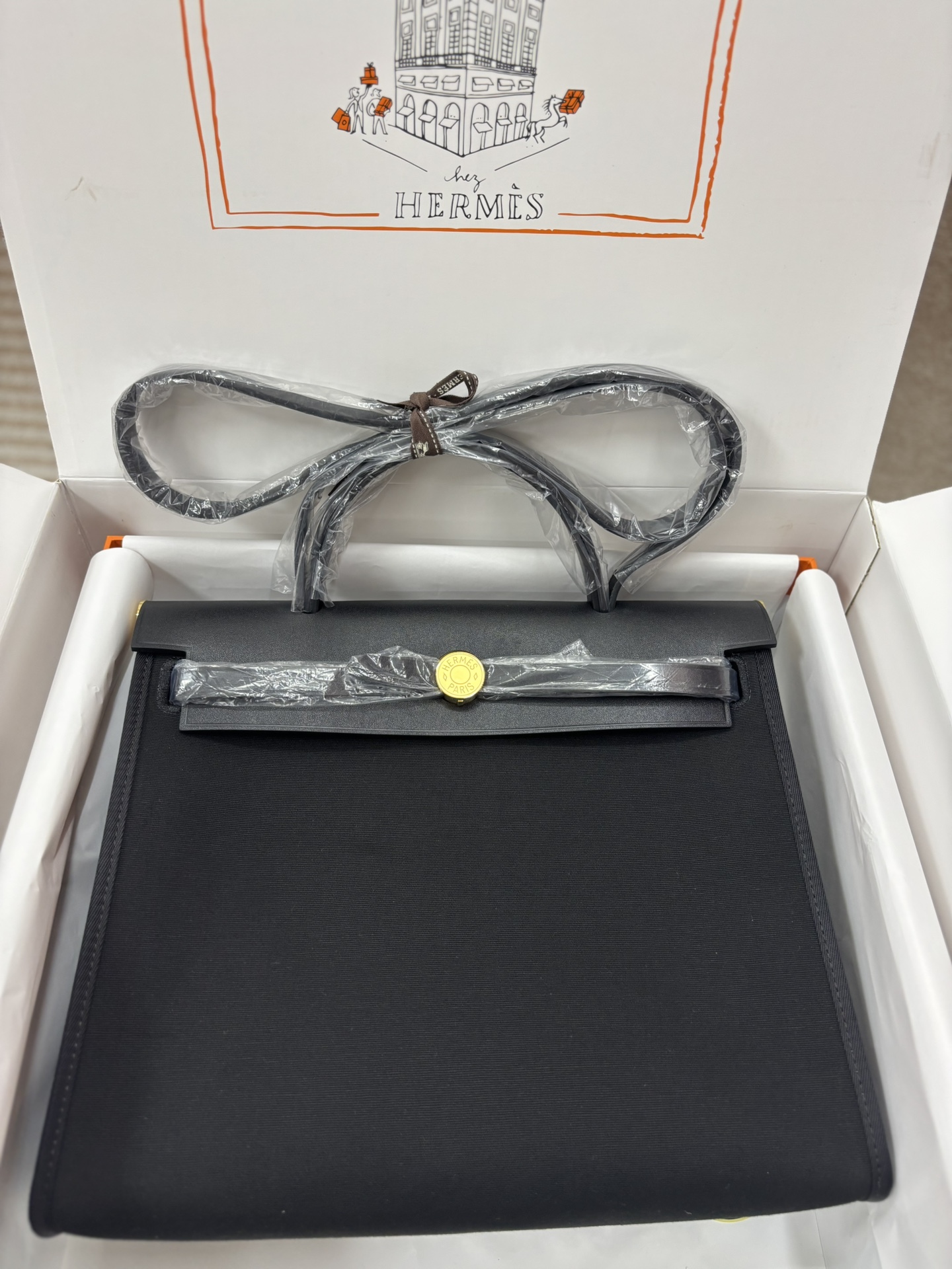 Hermes Herbag Zip 31 Bag Canvas/Hunter Black GHW